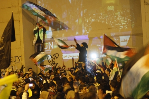 Valné zhromaždenie OSN veľkou väčšinou schválilo vo štvrtok večer žiadosť Palestíny o jej povýšenie na nečlenský pozorovateľský štát. Za sa vyslovilo 138 krajín, proti bolo deväť a 41 krajín sa hlasovania zdržalo. Z EÚ hlasovala proti len Česká republika. Palestínčania tak získali v OSN rovnaký štatút, ako má napríklad Vatikán. Foto: SITA/AP Photo/Nasser Shiyoukhi