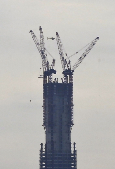 Presne 580 metrov meria nová Šanghajská veža, ktorú čochvíľa odovzdajú stavebníci do užívania. Jej obyvatelia sa môžu ubytovať na jednom zo 128 poschodí. Asi to nie je dosť, pretože budúci rok by sa veža mala zvýšiť na definitívnych 632 metrov. Foto: SITA/AP