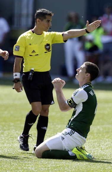Záložník Will Johnson z futbalového klubu Portland Timbers naznačuje, čo si myslí o verdikte rozhodcu Armanda Villarrealu po odpískaní jeho faulu v zápase proti FC Dallas. Len pár hodín po zápase už Johnson vidieť v mestskom parku trhal burinu, pretože sa s celým tímom dobrovoľne zúčastnil týždňa verejno-prospešných prác. Portland nakoniec vyhral 3:2 aj vďaka penaltovému gólu Johnsona. Foto: SITA/AP