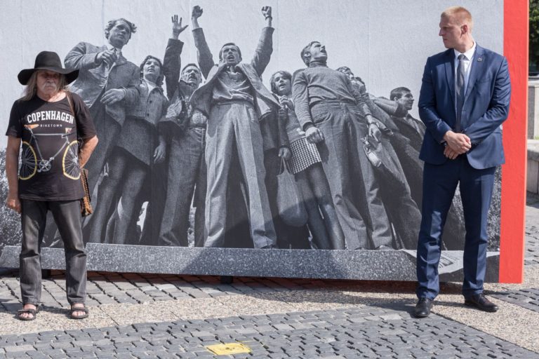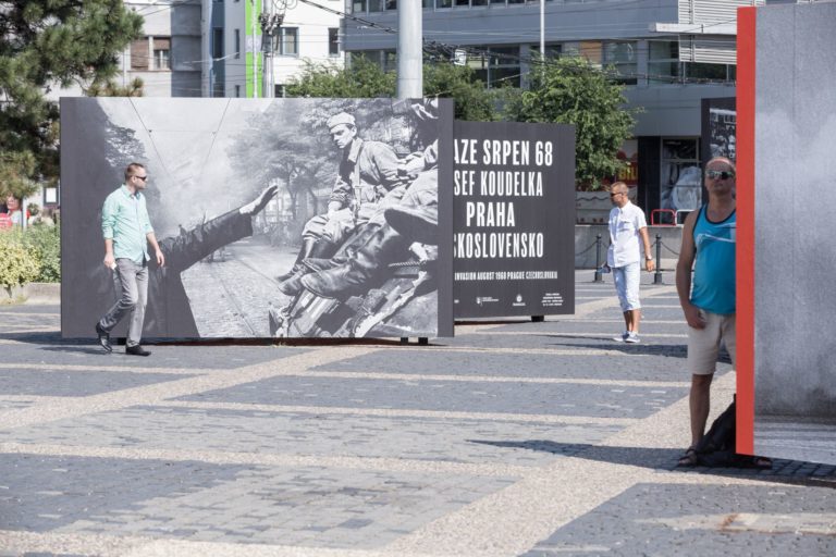Atmosféra počas výstavy fotografií Josefa Koudelky a Ladislava Bielika s názvom: Invázia August 68 na Hodžovom námestí v Bratislave pri príležitosti 50. výročia vpádu vojsk Varšavskej zmluvy do Československa v roku 1968. Bratislava, 21. august 2018. Foto: SITA/Braňo Bibel