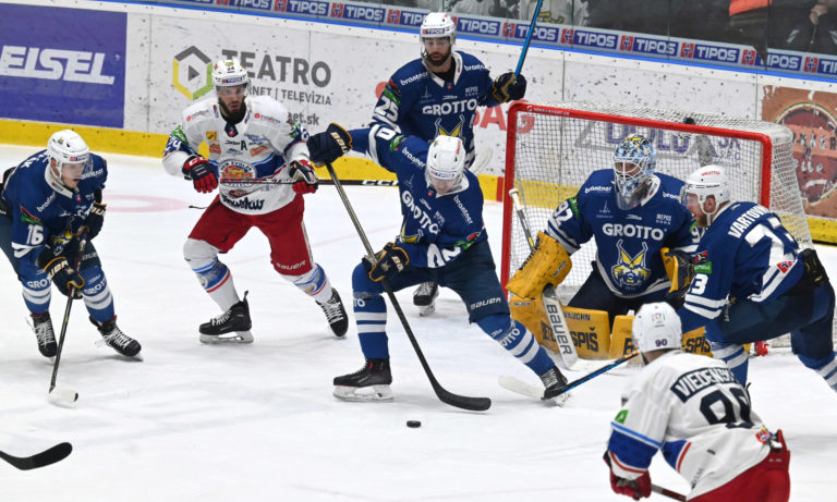 3:3 v šiestom zápase semifinále play-off extraligy mužov HK Grotto Spišská Nová Ves - HKM Zvolen. Spišská Nová Ves, 11. apríl 2023. Foto: SITA/Viktor Zamborský