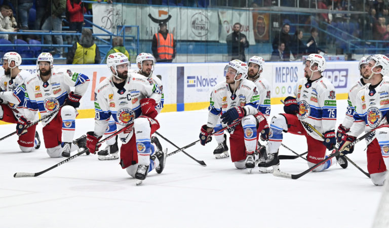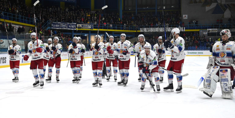 Radosť hráčov HKM Zvolen po vyrovnaní v sérii na