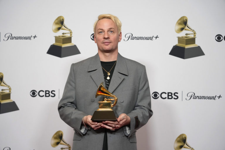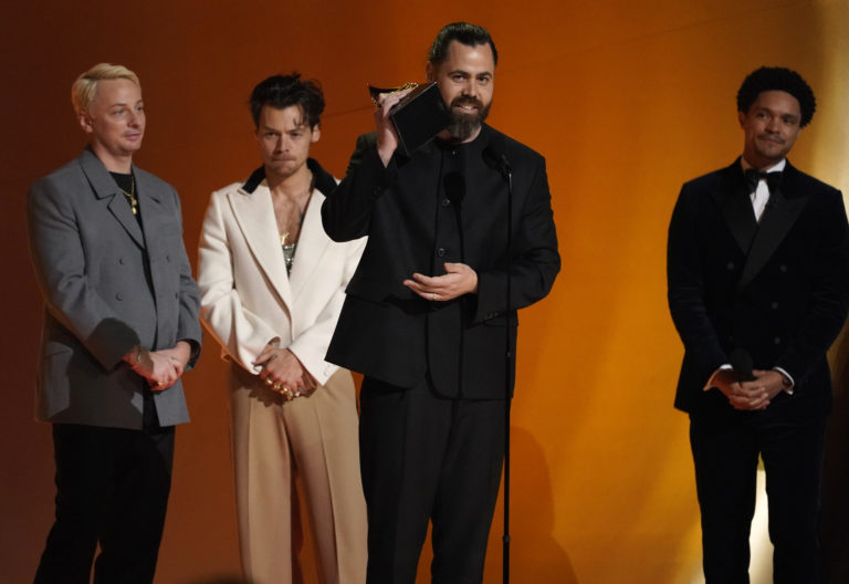 Kid Harpoon, víťaz najlepšieho albumu roka za skladbu „Harry's House“, pózuje v tlačovej miestnosti na 65. ročníku odovzdávania cien Grammy v nedeľu 5. februára 2023 v Los Angeles. Foto: SITA/AP.