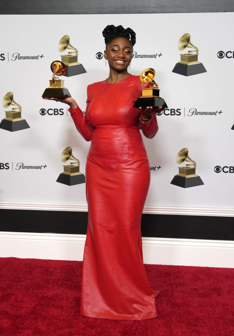 Samara Joy, víťazka ceny za najlepší jazzový vokálny album „Linger Awhile“ a najlepšia nová umelkyňa, pózuje v tlačovej miestnosti na 65. ročníku odovzdávania cien Grammy v nedeľu 5. februára 2023 v Los Angeles. Foto: SITA/AP.