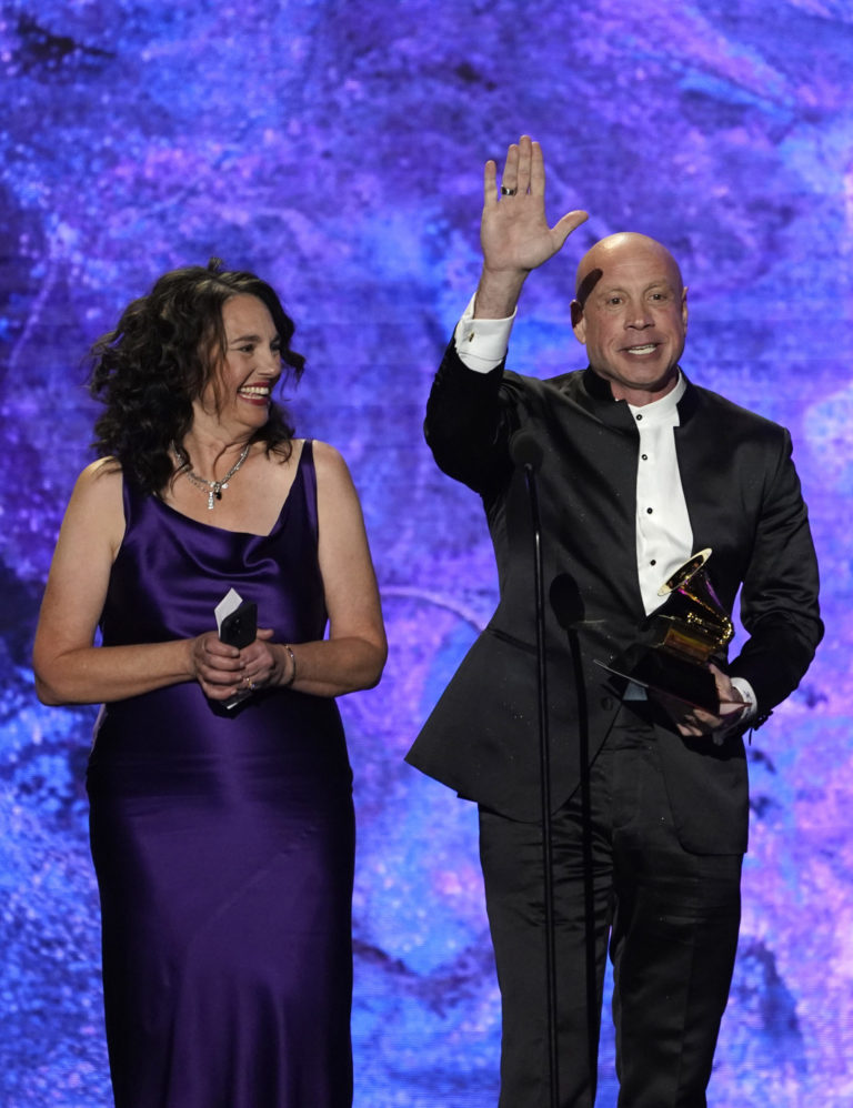 Starr Parodi, vľavo, a Kitt Wakeley preberajú cenu za najlepší klasický kompendium za „An Adoption Story“ na 65. ročníku odovzdávania cien Grammy v nedeľu 5. februára 2023 v Los Angeles. Foto: SITA/AP.