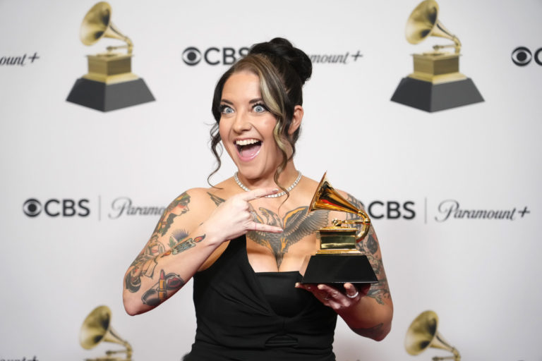 Ashley McBryde, víťazka za najlepší country výkon dua/skupiny za „Never Wanted To Be That Girl“, pózuje na 65. ročníku odovzdávania cien Grammy v nedeľu 5. februára 2023 v Los Angeles. Foto: SITA/AP.