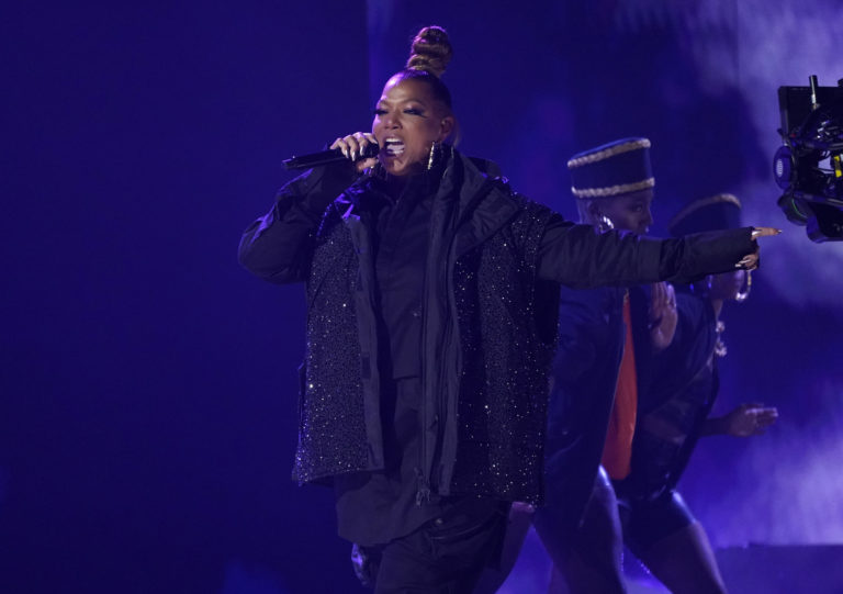 Queen Latifah hrá "U.N.I.T.Y." na 65. ročníku odovzdávania cien Grammy v nedeľu 5. februára 2023 v Los Angeles. Foto: SITA/AP.