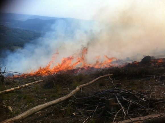 Hasiči bojujú s lesným požiarom v ťažko prístupnom teréne nad Betliarom a Gemerskou Polomou. Do boja s plameňmi nasadili aj vrtuľník. Foto: SITA/Eva Viestová