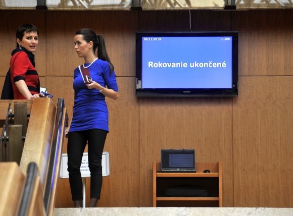 Hovorkyňa predsedu vlády SR Beatrice Szabóová (vľavo) a hovorkyňa podpredsedu vlády pre investície Ľubomíra Vážneho Silvia Belešová (vpravo) po skončení rokovania 82. schôdze vlády SR. Foto: SITA/Ján Slovák