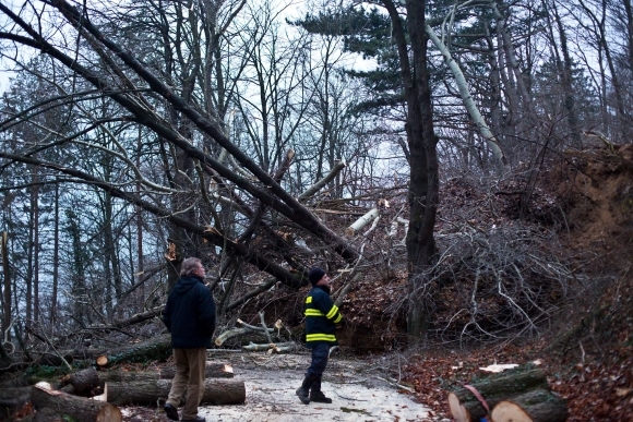 Zosuv veľkého množstva pôdy na Červenej veži pri obci Banka. V lokalite je vyhlásená mimoriadna situácia. Foto: SITA/Erik Ďuriš
