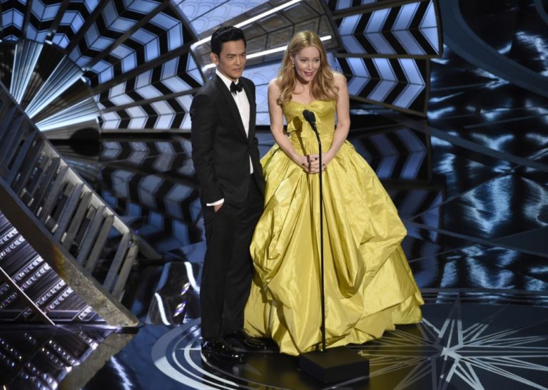 John Cho a Leslie Mann počas slávnostného udeľovania Oscarov v Dolby Theatre. Los Angeles, 26. február 2017. Foto: Chris Pizzello/Invision/AP