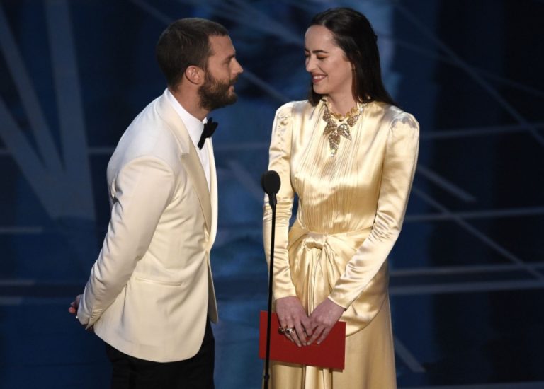 Zľava: Jamie Dornan a Dakota Johnson počas slávnostného odovzdávania Oscarov v Dolby Theatre. Los Angeles, 26. február 2017. Foto: Chris Pizzello/Invision/AP