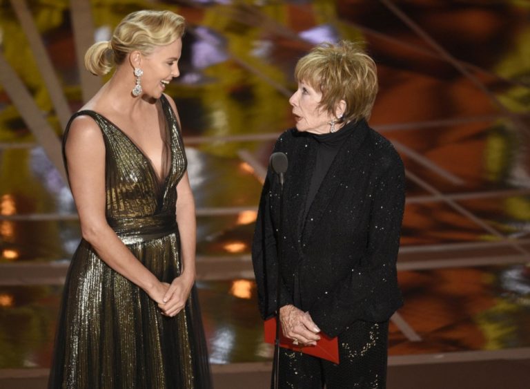 Zľava: Charlize Theron a Shirley MacLaine počas slávnostného odovzdávania Oscarov v Dolby Theatre. Los Angeles, 26. február 2017. Foto: Chris Pizzello/Invision/AP