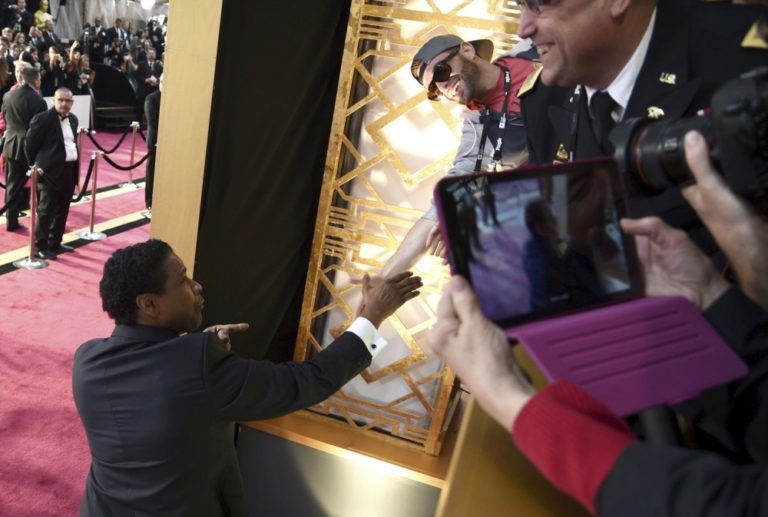 Denzel Washington za zdraví s fanúšikmi pred slávnostným odovzdávaním Oscarov v Dolby Theatre. Los Angeles, 26. február 2017. Foto: Chris Pizzello/Invision/AP
