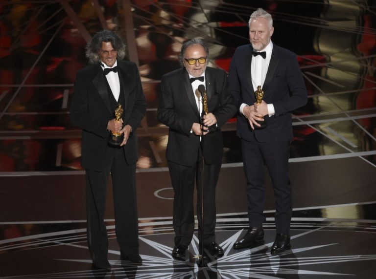 Oscarov v kategórii Masky si odniesli Giorgio Gregorini, Alessandro Bertolazzi, a Christopher Allen Nelson. Los Angeles, 26. február 2017. Foto: Chris Pizzello/Invision/AP