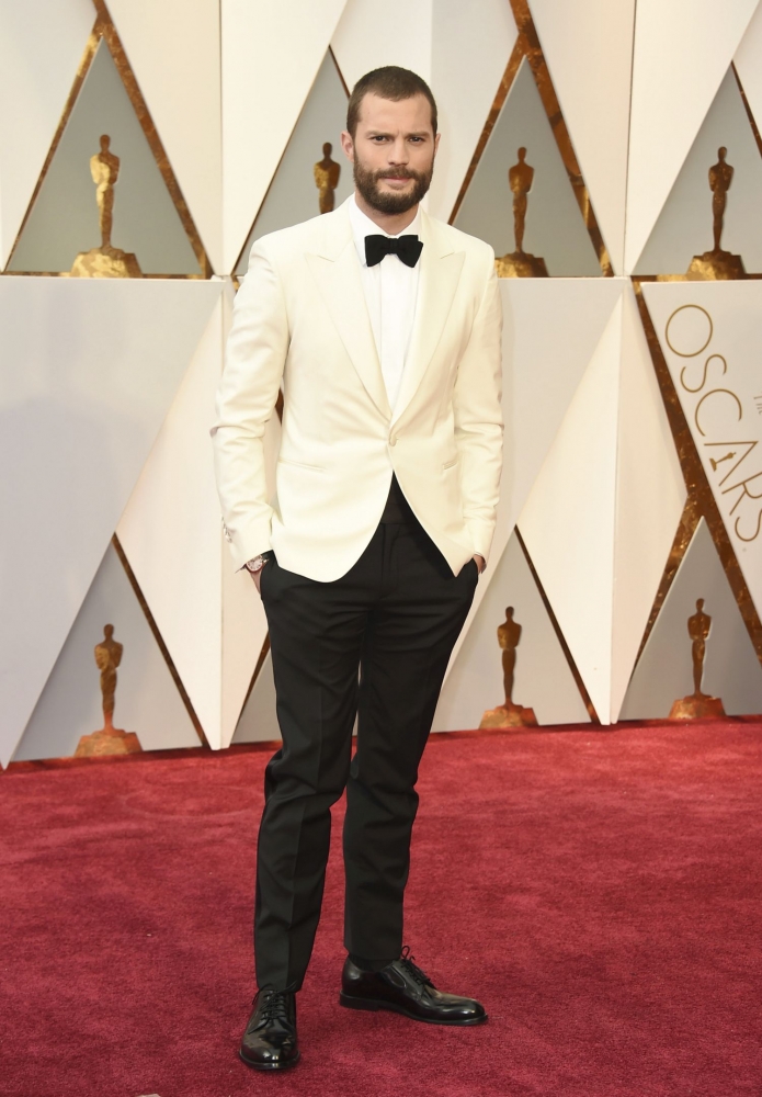 Jamie Dornan prichádza na udeľovanie Oscarov. Los Angeles, 26. február 2017. Foto: Jordan Strauss/Invision/AP