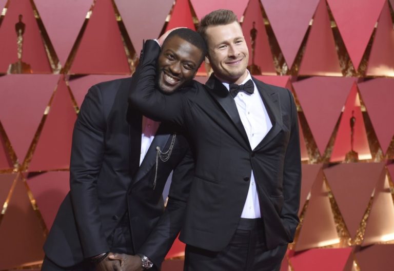 Zľava: Aldis Hodge a Glen Powell prichádzajú na udeľovanie Oscarov. Los Angeles, 26. február 2017. Foto: Richard Shotwell/Invision/AP