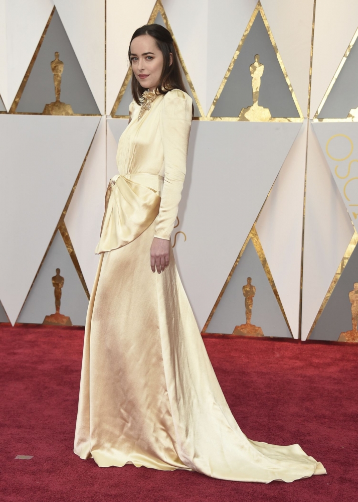 Dakota Johnson prichádza na udeľovanie Oscarov. Los Angeles, 26. február 2017. Foto: Jordan Strauss/Invision/AP