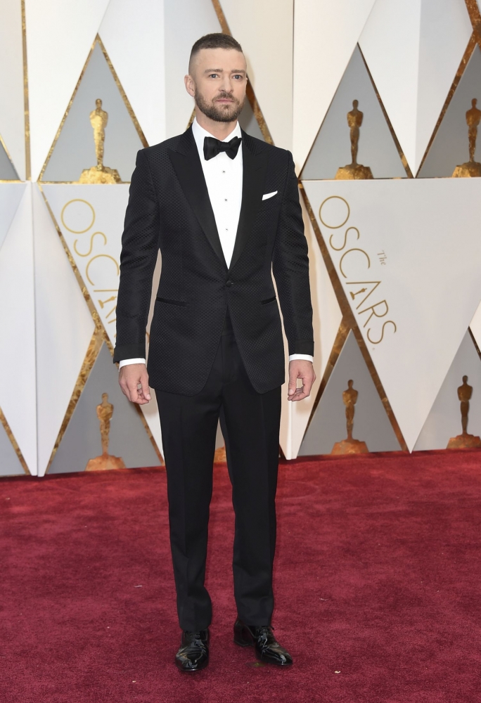 Justin Timberlake prichádza na udeľovanie Oscarov. Los Angeles, 26. február 2017. Foto: Richard Shotwell/Invision/AP