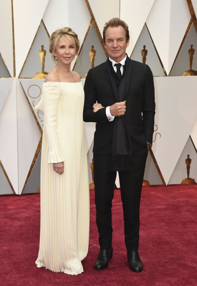 Trudie Styler a Sting prichádzajú na udeľovanie Oscarov. Los Angeles, 26. február 2017. Foto: Jordan Strauss/Invision/AP