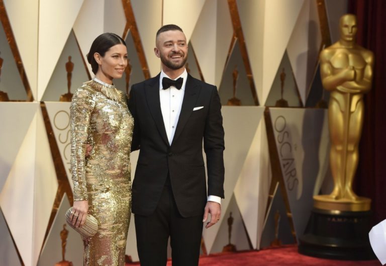 Jessica Biel a Justin Timberlake prichádzajú na udeľovanie Oscarov. Los Angeles, 26. február 2017. Foto: Jordan Strauss/Invision/AP