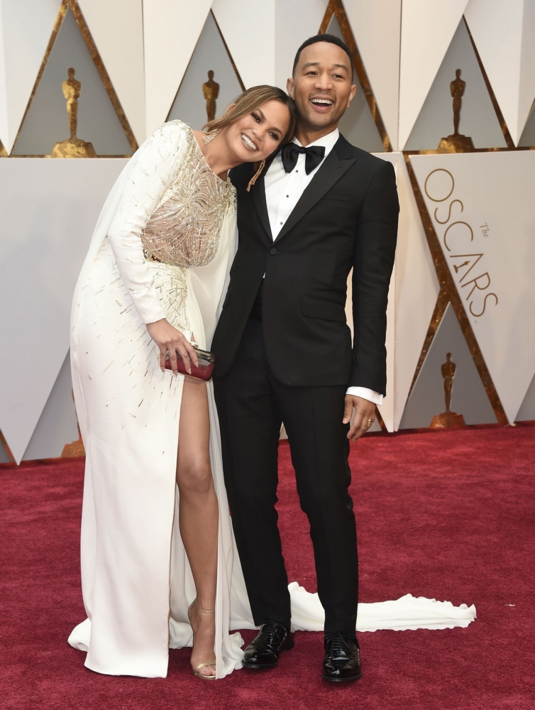 Chrissy Teigen a John Legend prichádzajú na udeľovanie Oscarov. Los Angeles, 26. február 2017. Foto: Richard Shotwell/Invision/AP