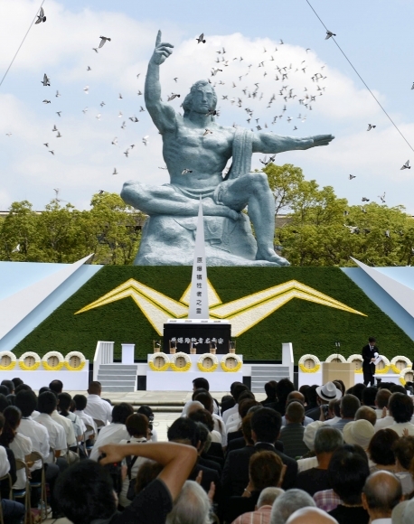 Kŕdeľ holubíc nad japonským mestom Nagasaki, ktoré si pripomína 68. výročie zhodenia atómovej bomby na sklonku II. svetovej vojny. Pri výbuchu zahynulo 40-tisíc ľudí, celkový počet obetí sa vyšplhal na dvojnásobok. Explózia vyvolala teplotu 3900 °C a vietor s rýchlosťou vyše 1000 km/h. Foto: SITA/AP