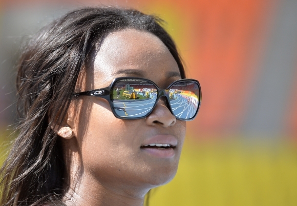 Odraz modrej atletickej dráhy na moskovskom štadióne Lužniky v okuliaroch jednej z účastníčok 14. majstrovstiev sveta v atletike, ktoré sa začínajú v sobotu. Foto: SITA/AP