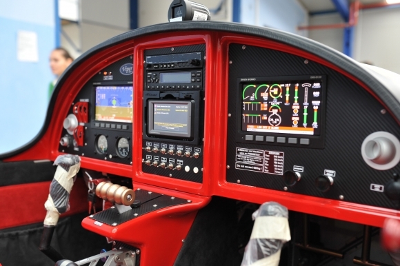 Pohľad do kokpitu ultraľahkého lietadla Viper SD-4 (angl. zmija) vo výrobnej hale firmy Tomark, v divízii TomarkAero v Prešove. Viper SD-4 je celokovové dvojmiestne ultraľahké lietadlo určené na športové, zábavné a rekreačné lietanie. Foto: SITA/Viktor Zamborský
