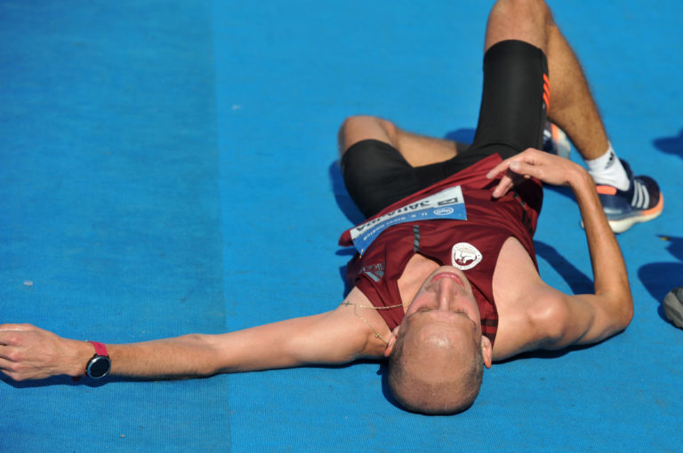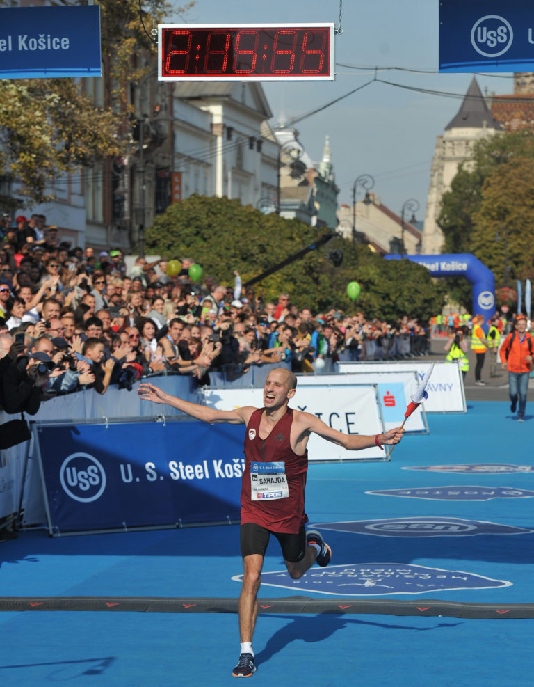 Najrýchlejší Slovák Tibor Sahajda v cieli 95. ročníka Medzinárodného maratónu mieru v Košiciach. Košice, 7. október 2018. Foto: SITA/Viktor Zamborský