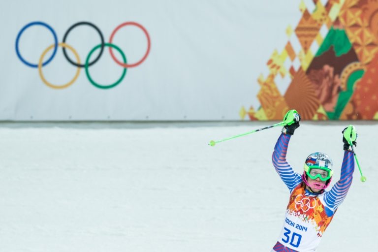 Slovenský reprezentant v alpskom lyžovaní Adam Žampa počas slalomu mužov na ZOH 2014 v Soči.