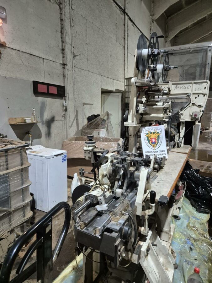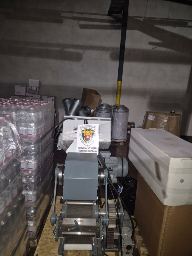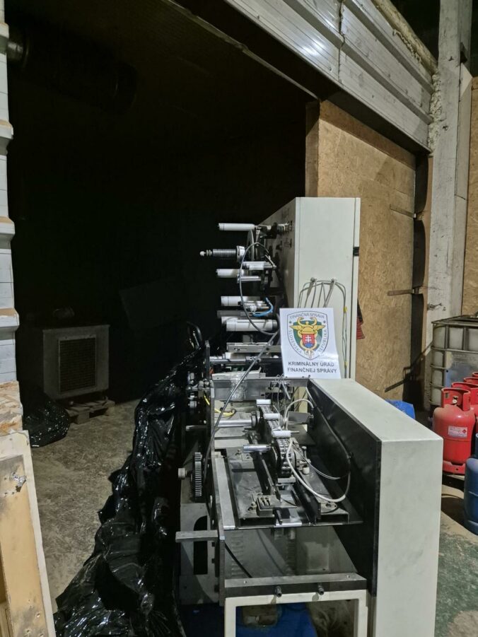 Kriminálny úrad finančnej správy (KÚFS) odhalil jednu z najväčších nelegálnych výrobní cigariet na východnom Slovensku. Ide o jeden z historicky najrozsiahlejších prípadov, a to z hľadiska počtu zadržaných osôb aj výšky škody na ušlej spotrebnej dani. Počas akcie Šarišan zadržali 29 ľudí, obvineniu čelí deväť osôb. Predbežná škoda presiahla 9,2 milióna eur. Bratislava, 1. december 2025. Foto: SITA/Finančné riaditeľstvo SR