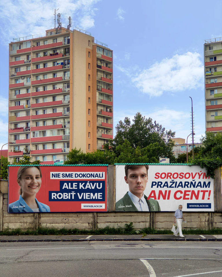 Bratislavská kaviareň nedávno vytvorila jedinečnú a vtipnú kampaň, ktorá parodovala slovenskú predvolebnú scénu. Foto: Black