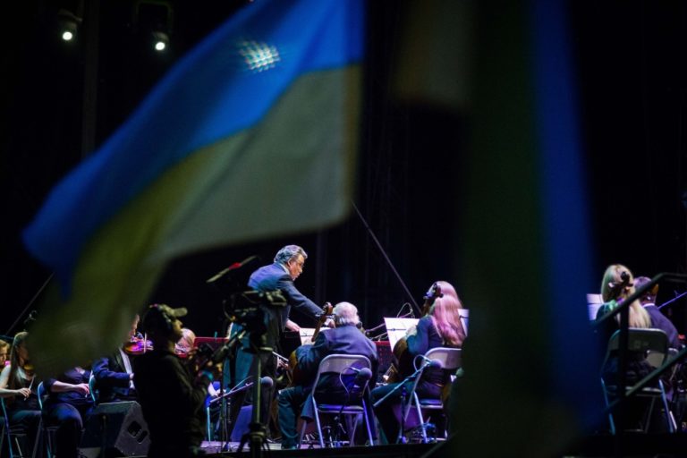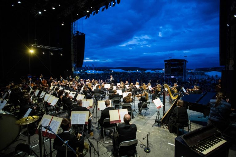 Ukrajinská národná filharmónia počas vystúpenia na 18. ročníku multižánrového festivalu Bažant Pohoda. Trenčín, 10. júl 2014. Foto: SITA/Jozef Jakubčo