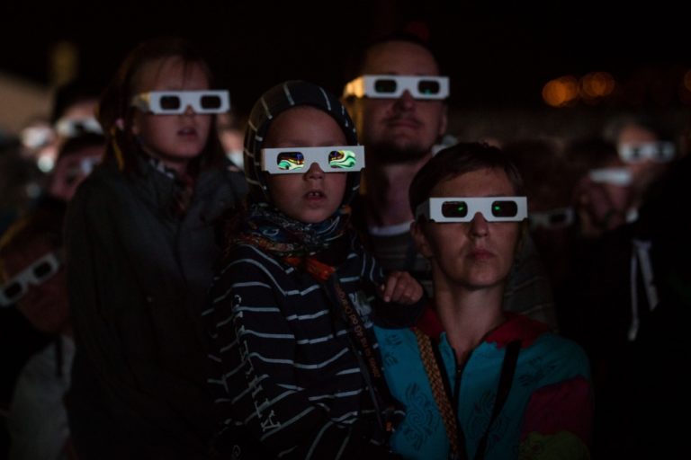 Návštevníci festivalu Pohoda sledujú 3D vystúpenie skupiny Kraftwerk. V Trenčíne sa začal 18. ročník multižánrového festivalu Bažant Pohoda. Trenčín, 10. júl 2014. Foto: SITA/Jozef Jakubčo