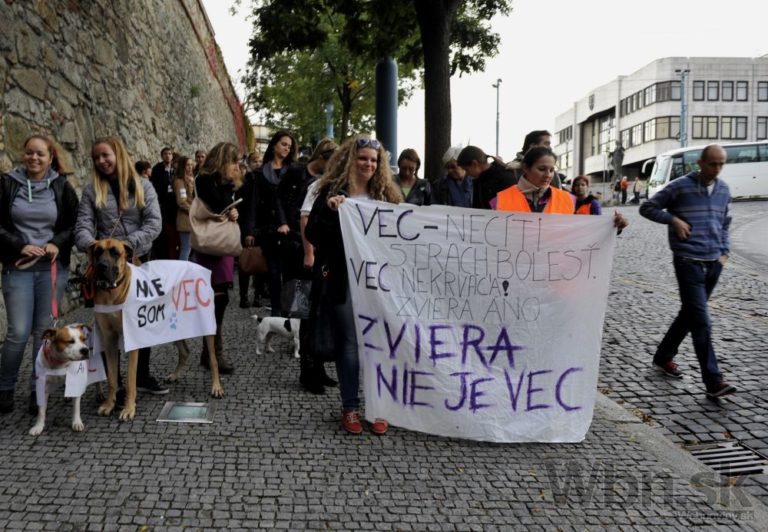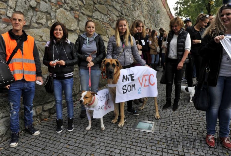 Pochod za prijatie návrhu Zákona o ochrane zvierat (ZOOZ) organizovaný občianskym združením Pes v núdzi a Majme srdce. Bratislava, 17. október 2014. Foto: SITA/Ján Slovák