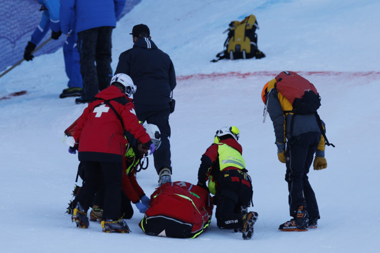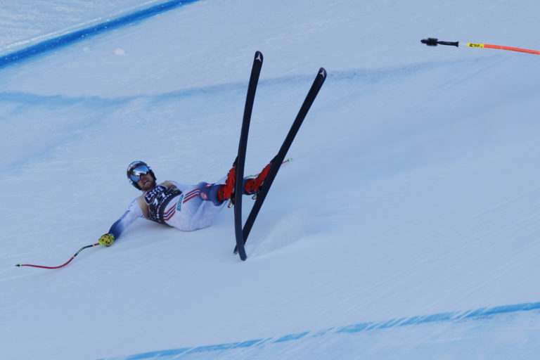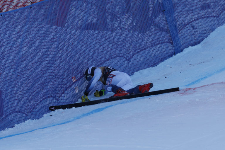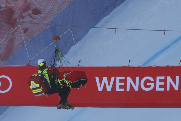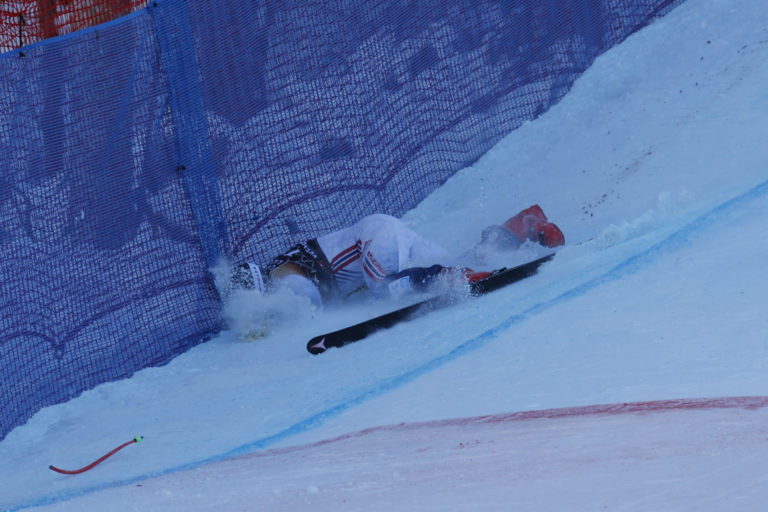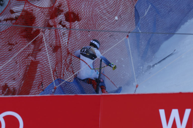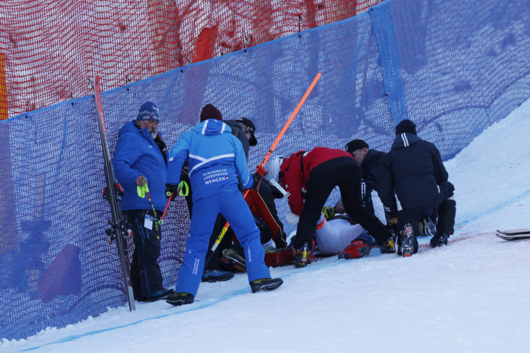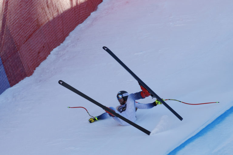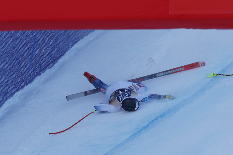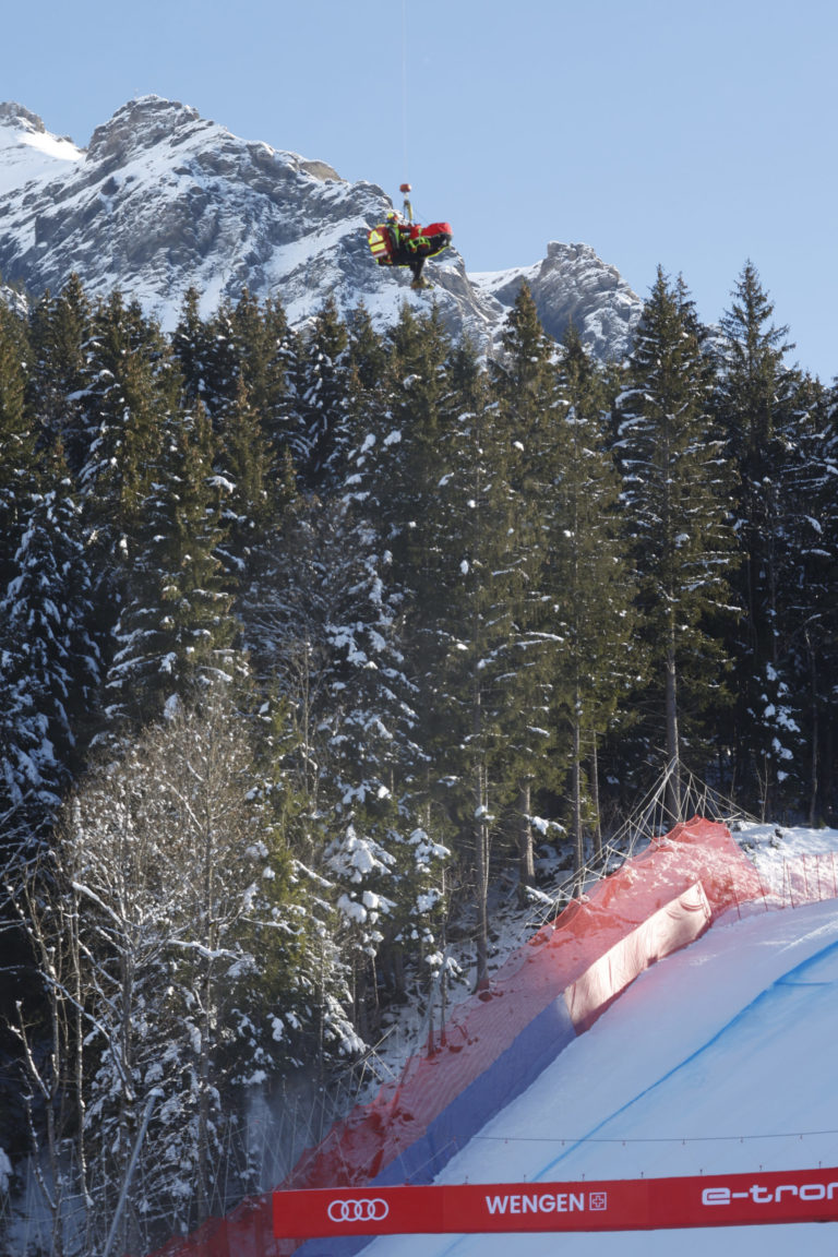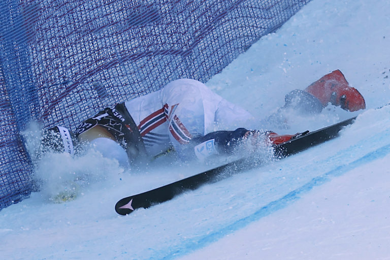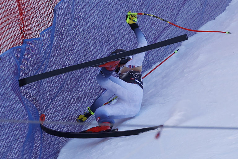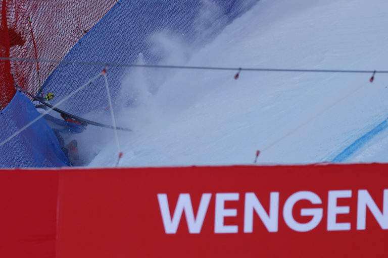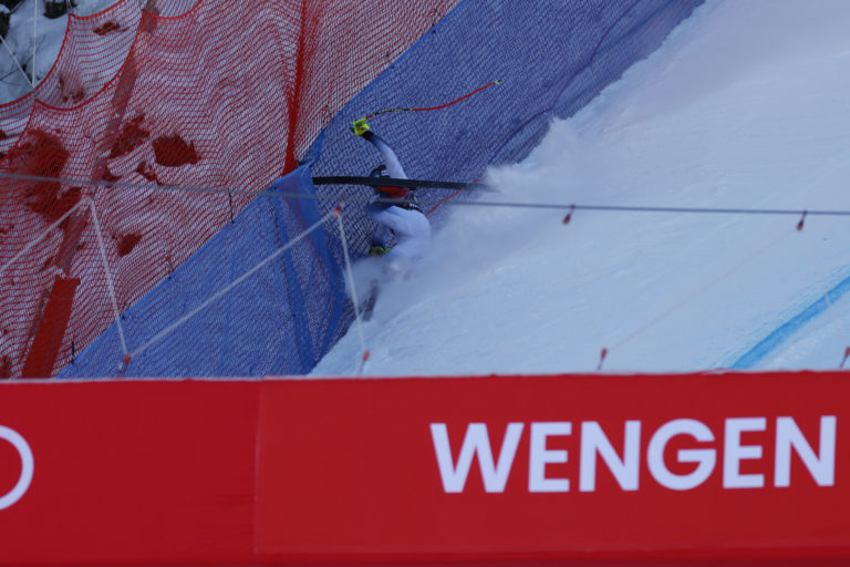 Nór Aleksander Aamodt Kilde nedokončil sobotňajší zjazd vo Wengene, keď tesne pred cieľom v rýchlosti 145 km/h vyletel z trate. Wengen, 13. január 2024. Foto: SITA/AP.