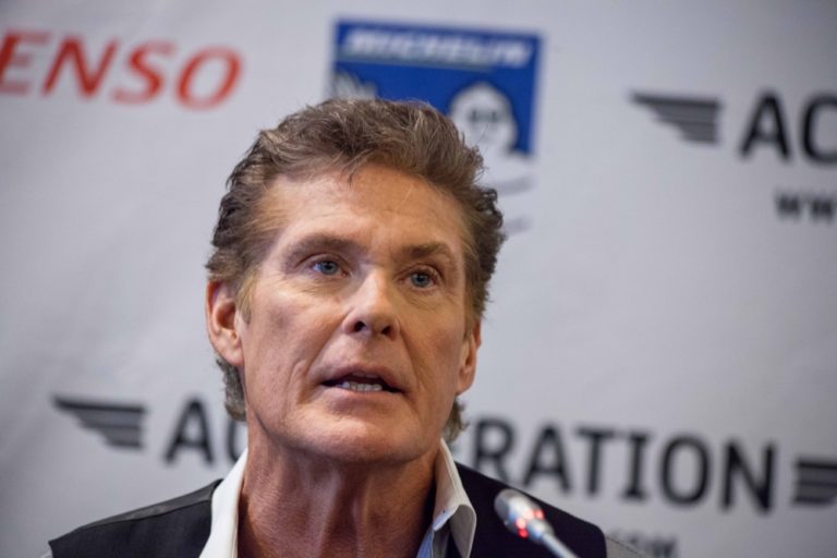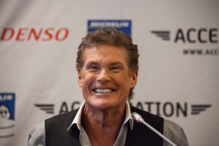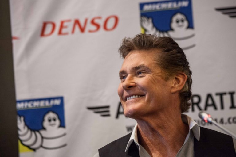 Americký filmový herec a spevák David Hasselhoff počas tlačovej konferencie hudobno-motoristického podujatia Acceleration 2014 (Slovakia Ring). Bratislava, 3 júl 2014. Foto: SITA/Katarína Acélová