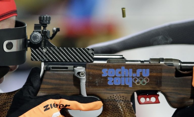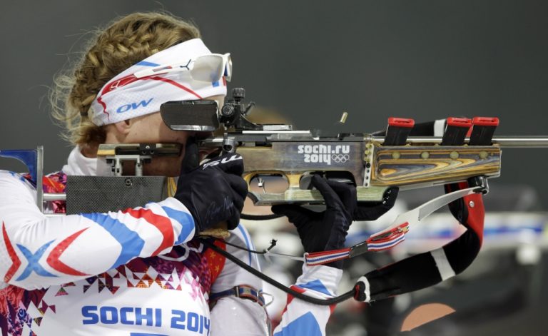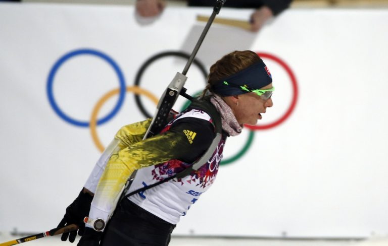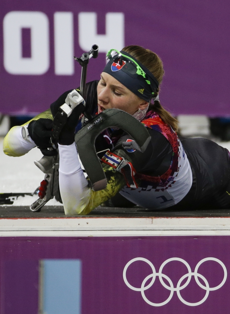 Slovenská reprezentantka v biatlone Anastasia Kuzminová v stíhacích biatlonových pretekoch žien na ZOH 2014 v Soči. Rusko, Soči, 11. február 2014. Foto: SITA/AP