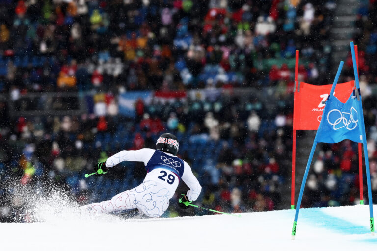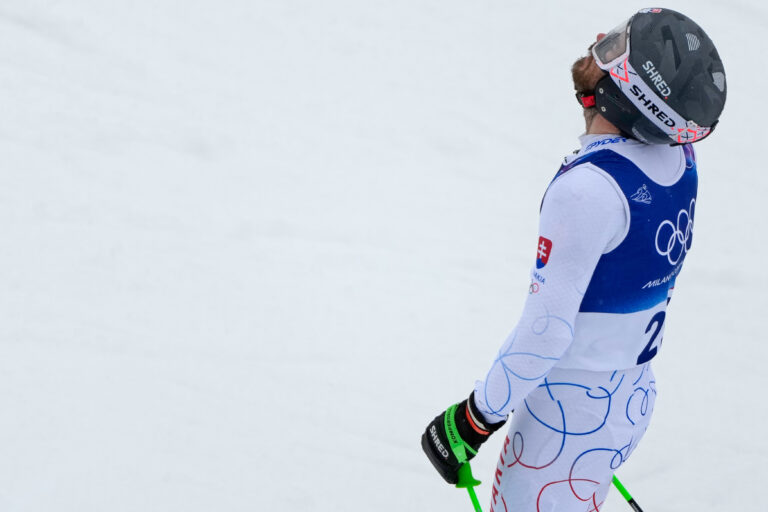 Slovenský lyžiar Andreas Žampa v cieli obrovského slalomu na ZOH 2026 Miláno/Cortina. Bormio, 14. február 2026. Foto: SITA/AP.