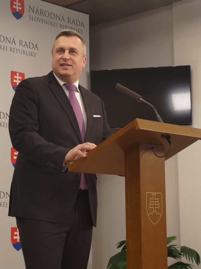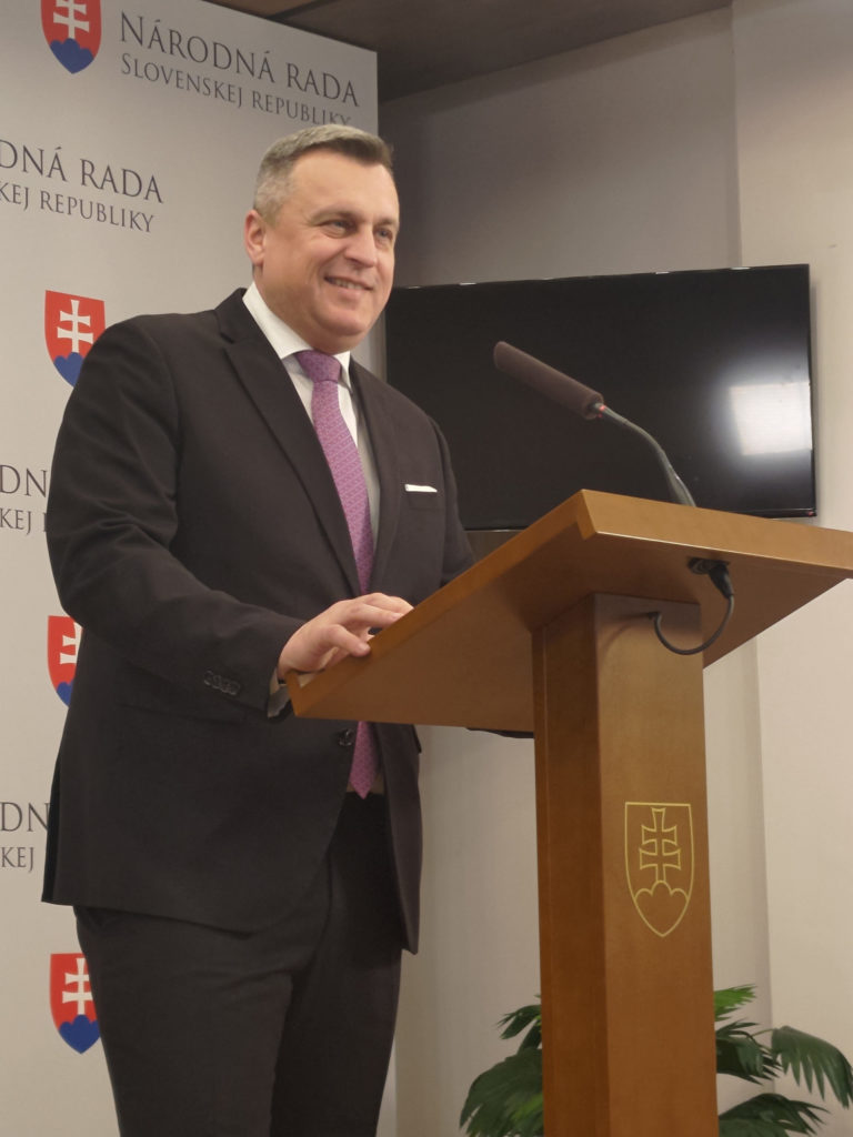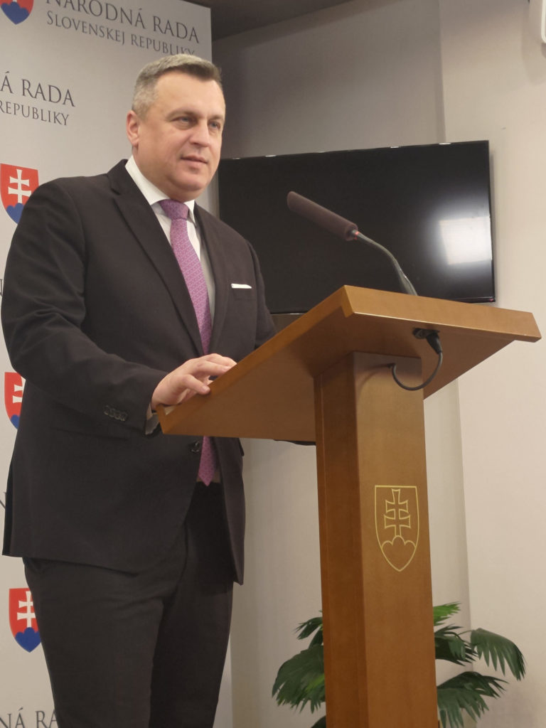 Podpredseda NR SR a predseda strany Slovenská národná strana (SNS) Andrej Danko počas oznámenia kandidatúry na post prezidenta Slovenskej republiky v Národnej rade (NR) SR. Bratislava, 29. január 2024. Foto: SITA.