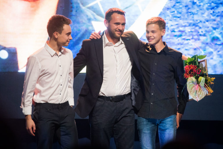 Tenista Ján Krošlák (uprostred) so svojimi synmi. Foto: SITA/Diana Černáková.