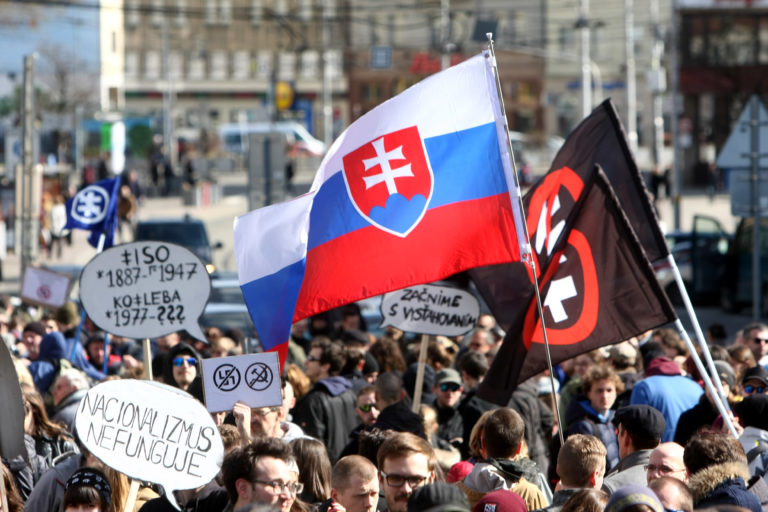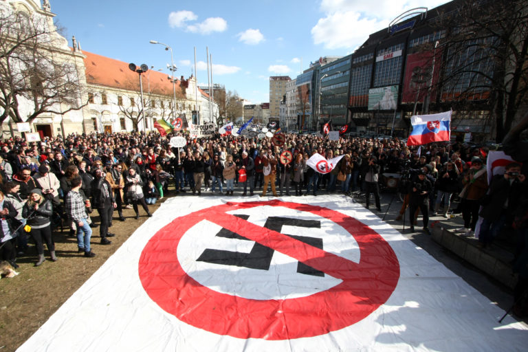 Vyše tisíc ľudí sa zúčastnilo na antifašistickej demonštrácii na Námestí SNP v Bratislave. Svoj názor vyjadrili transparentmi s nápismi Spolu proti fašizmu či Nacionalizmus nefunguje.