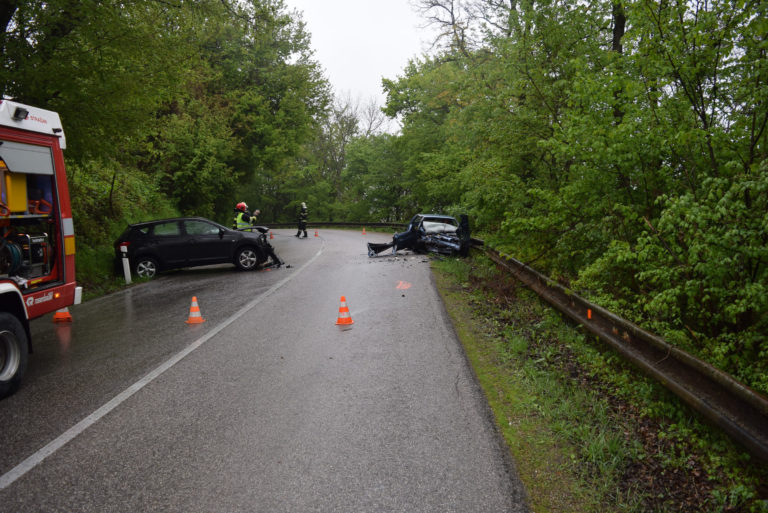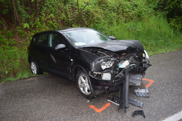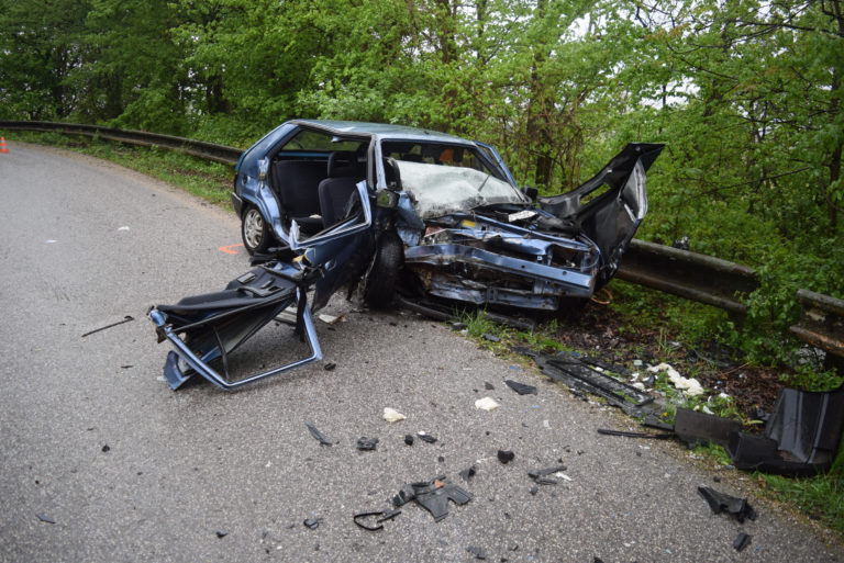 Dve ťažké a štyri ľahšie zranenia si vyžiadala ranná nehoda, ktorá sa stala medzi Skalkou nad Váhom a Zamarovcami v okrese Trenčín. Iba sedemnásťročný Anton na Favorite, v ktorom viezol ďalších štyroch mladých ľudí, dostal v zákrute na mokrej ceste šmyk, prešiel do protismeru a čelne sa zrazil s protiidúcim Nissanom Qashqai. Tínedžer ani nevlastní vodičský preukaz. Foto: SITA/KR PZ Trenčín