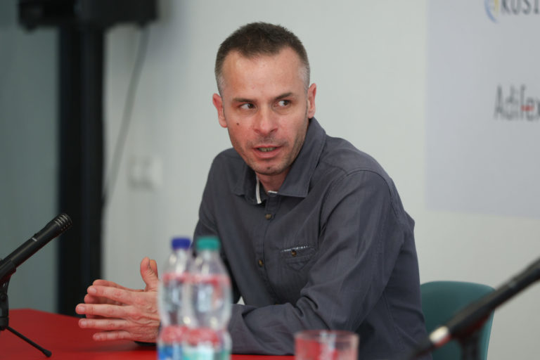 Umelecký riaditeľ festivalu Martin Palúch na tlačovej konferencii Hercova misia v košickom Kulturparku počas Art Film Festu Košice 2023. Košice, 17. jún 2023. Foto: SITA/Marek Lukáč.