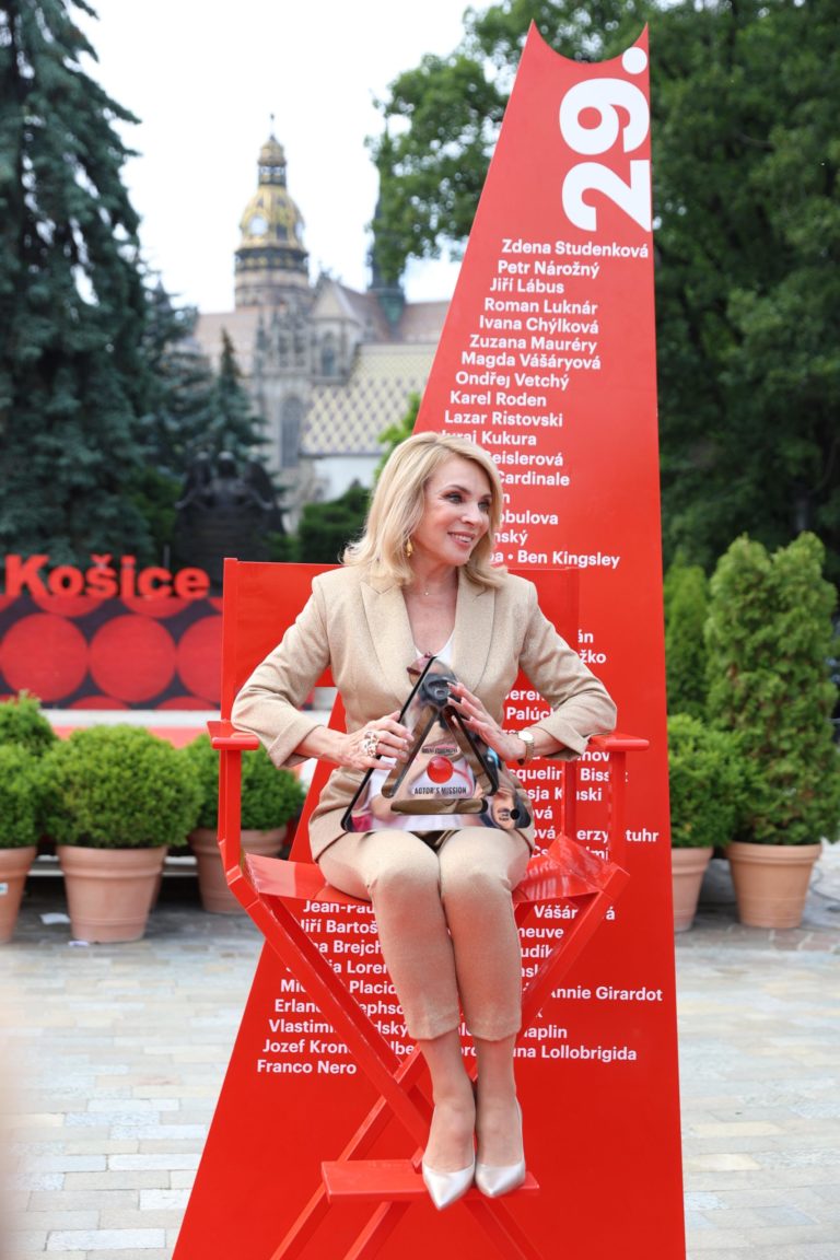Herečka Zdena Studenková s cenou Hercová misia v rámci Art Film Fest Košice 2023 na Dolnej bráne v Košiciach. Košice, 17. jún 2023. Foto: SITA/Marek Lukáč.