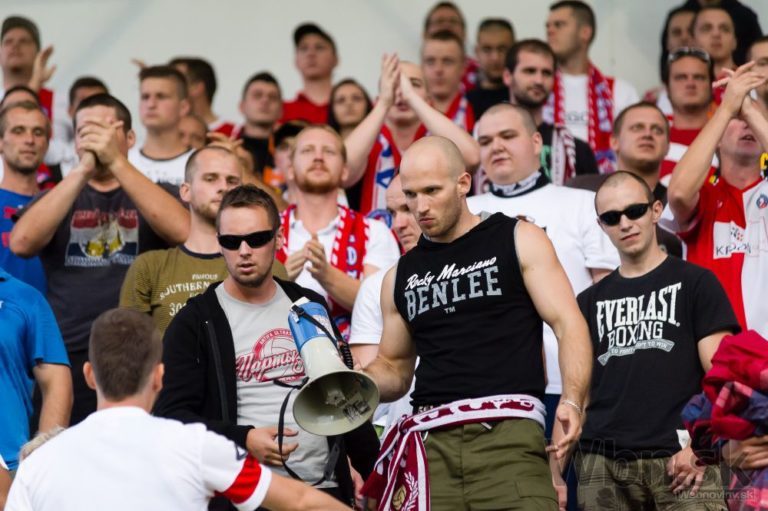 Fanúšikovia Trenčína počas zápasu 3. predkola Európskej ligy 2014/2015 medzi AS Trenčín (SR) a Hull City (Angl.). Žilina, 31. júl 2014. Foto: SITA/Milo Fabian