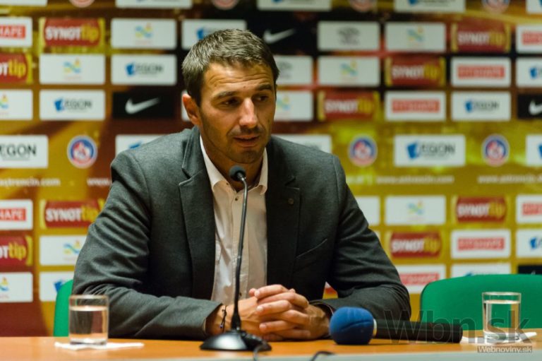 Tréner AS Trenčín Martin Ševela počas tlačovej konferencie po zápase 3. predkola Európskej ligy 2014/2015 medzi AS Trenčín (SR) a Hull City (Angl.). Žilina, 31. júl 2014. Foto: SITA/Milo Fabian