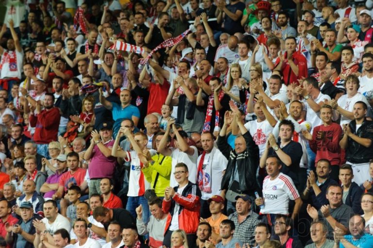 Atmosféra v hľadisku Trenčanov počas zápasu medzi FK AS Trenčín - FC Steaua Bukurešť. Žilina, 14. júl 2015. Foto: SITA/Milo Fabian