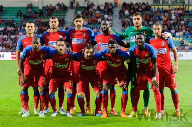 Mužstvo FC Steaua Bukurešť pred zápasom medzi FK AS Trenčín - FC Steaua Bukurešť. Žilina, 14. júl 2015. Foto: SITA/Milo Fabian